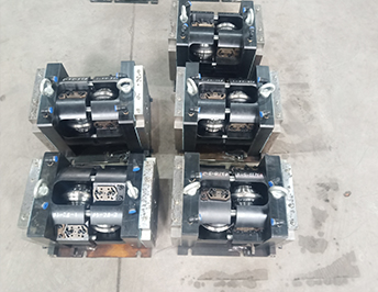 輥模,它是由一組高耐磨材料、精加工孔型的輥輪組成,輥輪數(shù)量上的選擇是根據(jù)材料、線徑、減面率的不同選擇不同的配置(從4個到10個不等),線通過輥模時是靠拉力和線與輥輪孔型之間的摩擦帶動輥輪轉(zhuǎn)動,線出來時被輥輪孔輥壓減徑.標(biāo)準(zhǔn)輥模出線的直徑公差+/-0.02mm,特殊型號的輥模出線直徑公差+/-0.01mm;輥輪的正常使用磨損壽命(使用到公差超出設(shè)計公差時)與加工材料類型、表面狀況和輥模維護(hù)管理有關(guān),嚴(yán)格意義上與加工線的長度成一定比例關(guān)系,但按生產(chǎn)管理習(xí)慣,同一用戶一般產(chǎn)量按重量單位做統(tǒng)計(同樣噸數(shù),線徑大噸數(shù)高但長度?。Dp后的輥輪還可修磨改制成其它規(guī)格的輥輪,類似拉絲模的修模。