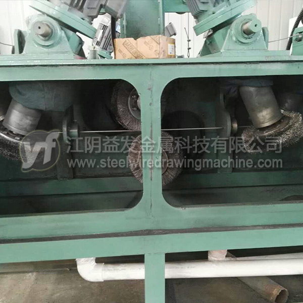 *嚴(yán)重的缺陷是鋼絲表面刷光后難以拉拔,鋼絲攜帶潤(rùn)滑粉較少,模具消耗量急劇增加,所以通常與砂帶拋光機(jī)結(jié)合使用,這樣既能100%去除銹蝕層,又能在鋼絲表面形成螺紋狀的凹痕,這些凹痕填滿潤(rùn)滑粉進(jìn)入模具,拉絲效果媲美涂硼或者磷化。
